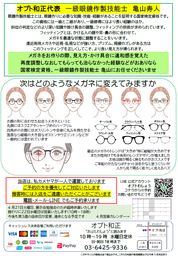 洗足池時代からのお客様、眼鏡作製技能士を信頼してくださったお客様、